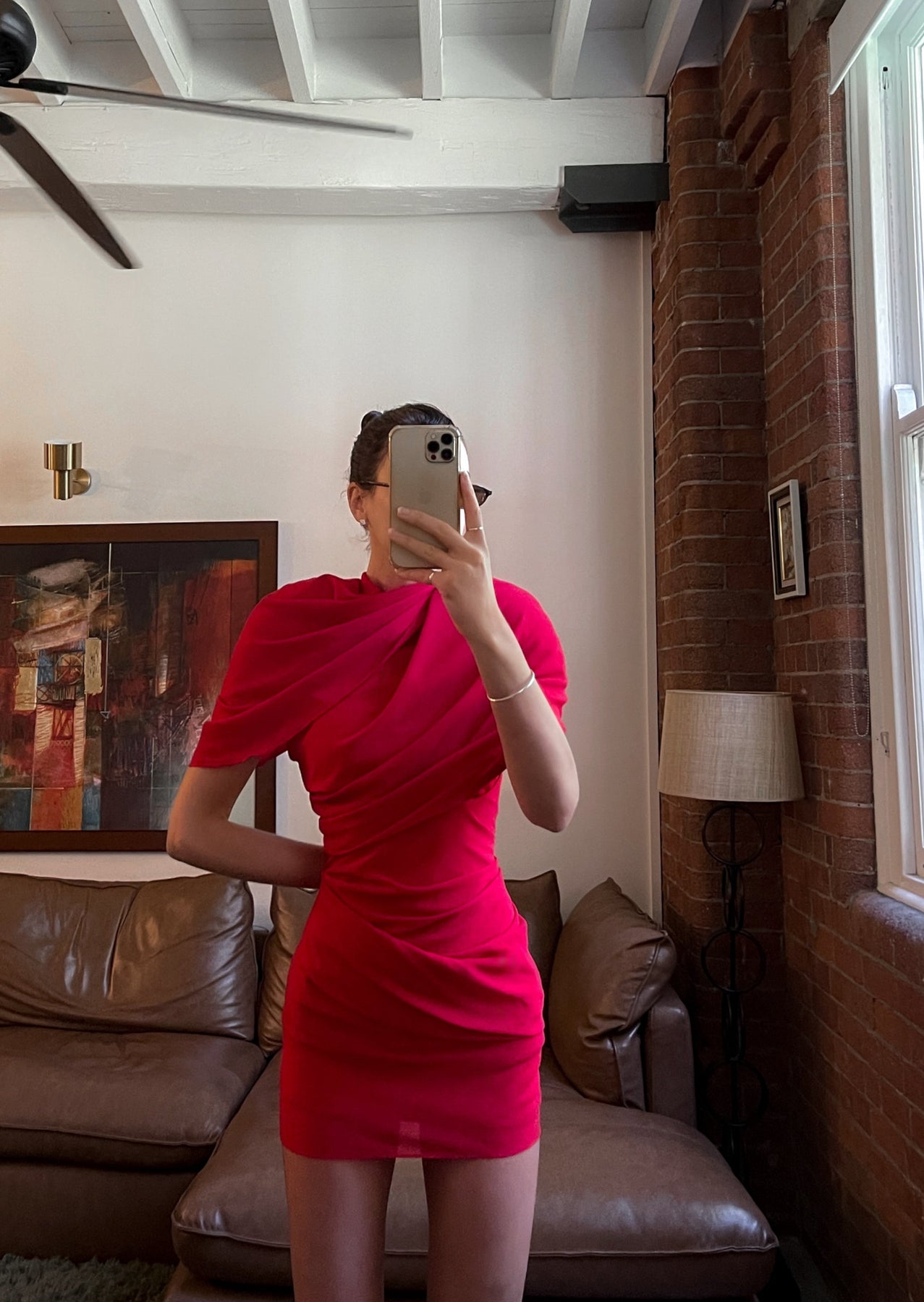 The Kiri Mini Dress combines modern elegance with a playful twist, featuring an asymmetrical hem and intricate pleating that adds dynamic texture. Designed to make an impression, this dress is perfect for any stylish occasion.