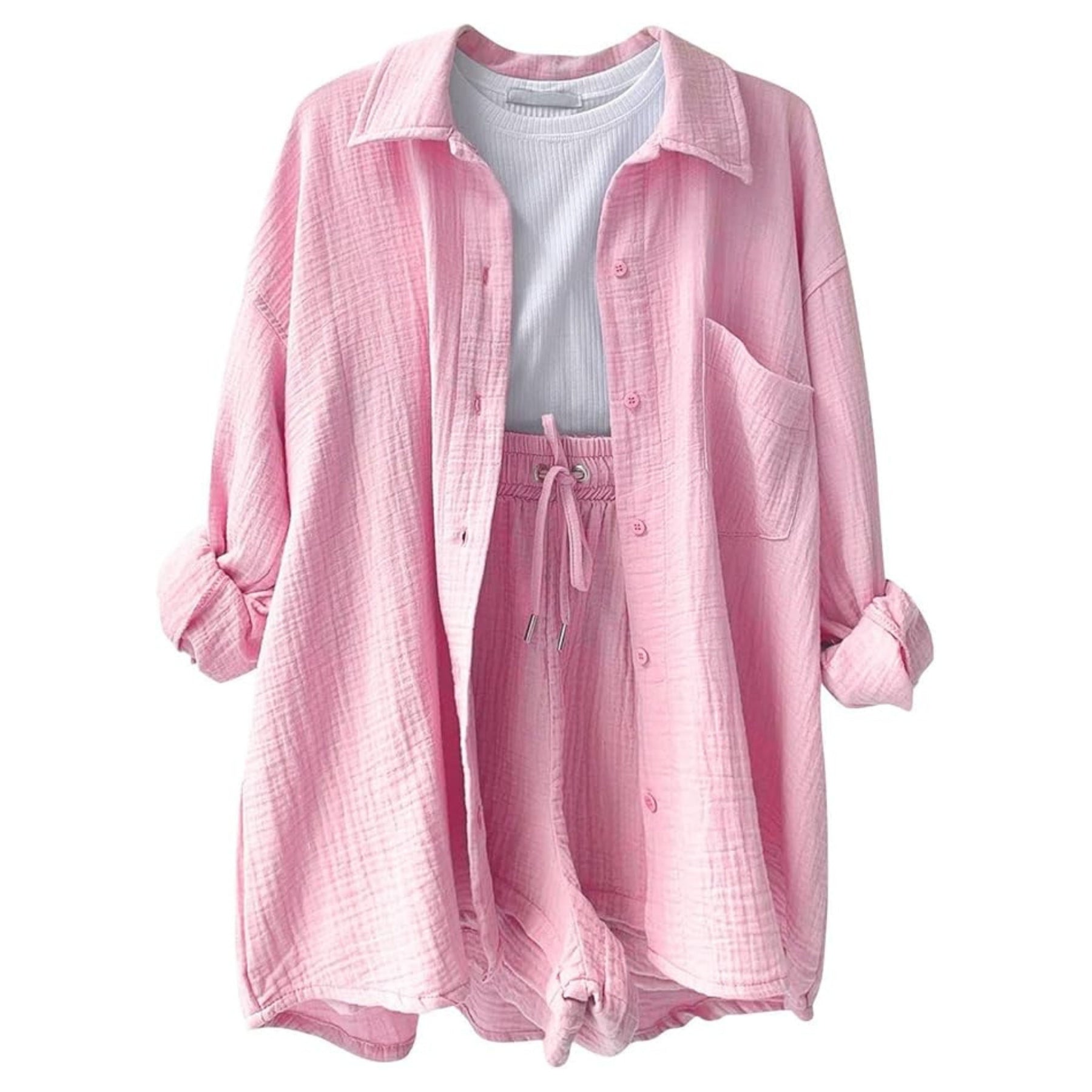 Made from high-quality, lightweight fabric, this versatile outfit moves seamlessly from sunny beach days to elegant evening events. The slightly cropped cut (we recommend sizing up) highlights your figure with a light, summery touch.